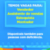 Estão sendo ofertadas vagas para os cargos de vendedor, assistente de vendas, estoquista e montador. As vagas também estão disponíveis para pessoas com deficiência. Os interessados deverão efetuar seus cadastros e enviar seus currículos somente pela internet. Para enviar seu currículo CLIQUE AQUI.