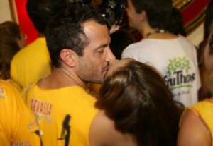 Malvino Salvador e Sophie Charlotte foram fotografados aos beijos em um camarote enquanto assistiam ao desfile das campeãs. “A gente está namorando sim”, afirmou o ator, após notar que foi fotografado.