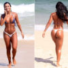 Noiva de Alexandre Frota esteve na praia da Barra da Tijuca nesta quarta-feira, 24.