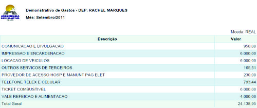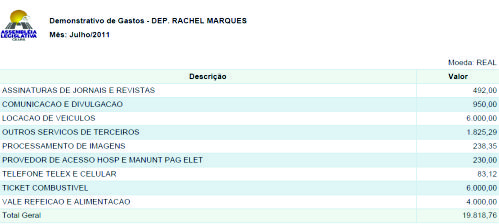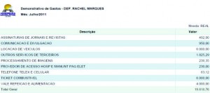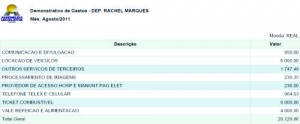 Nossa reportagem teve acesso aos extratos dos meses em que a deputada Rachel Marques estava sem exercer suas funções de parlamentar, portanto totalmente afastada da rotina de trabalho, contudo verificamos que os gastos da deputada com a famosa VDP (verba de desempenho parlamentar) foram exorbitantes, até mesmo para quem exerce a função ativamente.