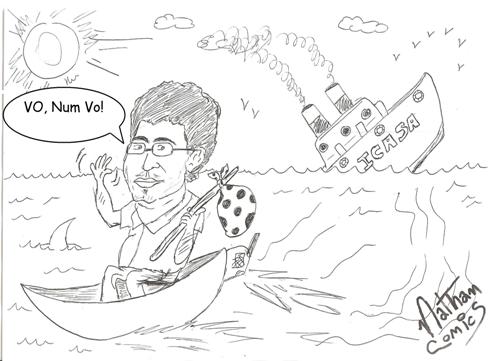 A charge desta semana retrata a renúncia do presidente do Icasa, que após renunciar, horas depois, decidiu voltar ao cargo.