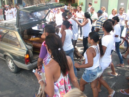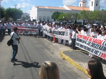 Ainda chocadas e emocionadas com o crime cometido contra a jovem, as pessoas caminhavam em silêncio e pararam durante o percurso na Rua Monsenhor Salviano Pinto, uma das principais da cidade, para uma oração em frente à Secretaria Municipal da Saúde, onde aconteceu o crime.