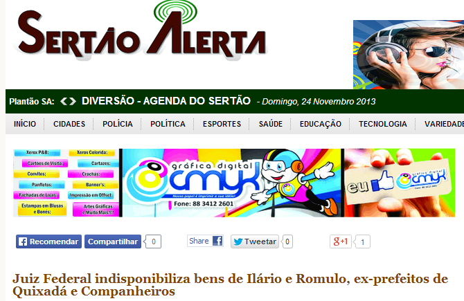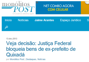 Todas estas mídias deram destaque à decisão da Justiça Federal da 5ª Região de bloquear bens dos ex-gestores de Quixadá. Também no decorrer da semana, a Câmara Municipal de Quixadá aprovou CPI destinada a investigar, inclusive, o caso que ficou conhecido como ‘Gaiolas Fantasmas’.