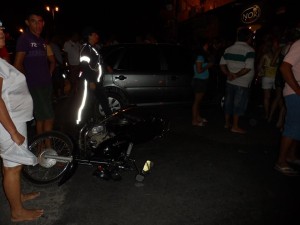 Benício Manduca Pereira, 32 anos, conduzia um veículo gol, de cor cinza, de placas KHI 5627, que se chocou contra a traseira da moto Honda/CG 125 FAN, de cor preta, placa NQU 5459, conduzida por uma jovem identificada como Flaviane D. M. C., 26 anos. Na garupa da moto estava outra mulher, identificada pelas iniciais F.B.S, 21 anos, e também sua filhinha de apenas três anos de idade.