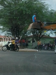 Uma cena curiosa retratando uma ação de muita irresponsabilidade – diga-se de passagem -, foi compartilhada nesta segunda-feira, 10, nas redes sociais. Um trabalhador à serviço da Prefeitura de Quixadá, sentado sobre o braço mecânico de uma máquina doada ao município pelo Governo Federal, é elevado a uma altura significativa. O episódio ocorreu no cruzamento de ruas próximo à FECLESC.