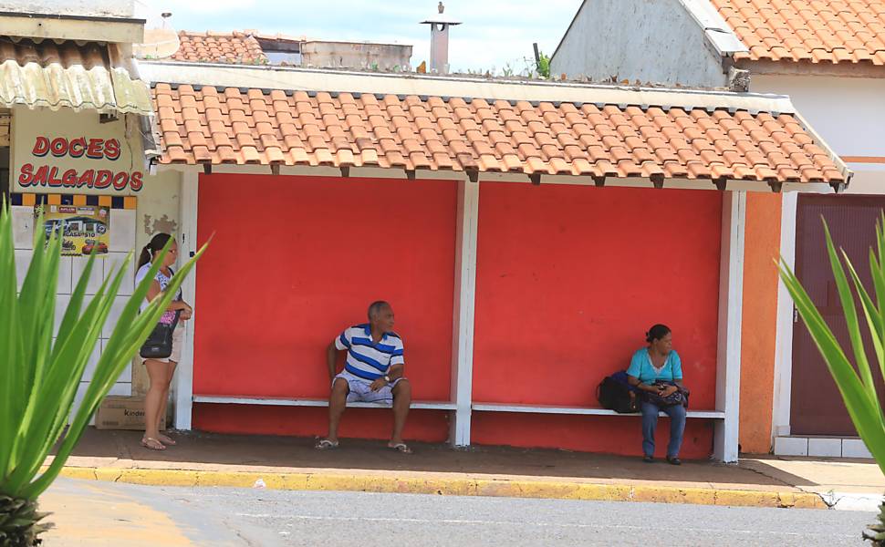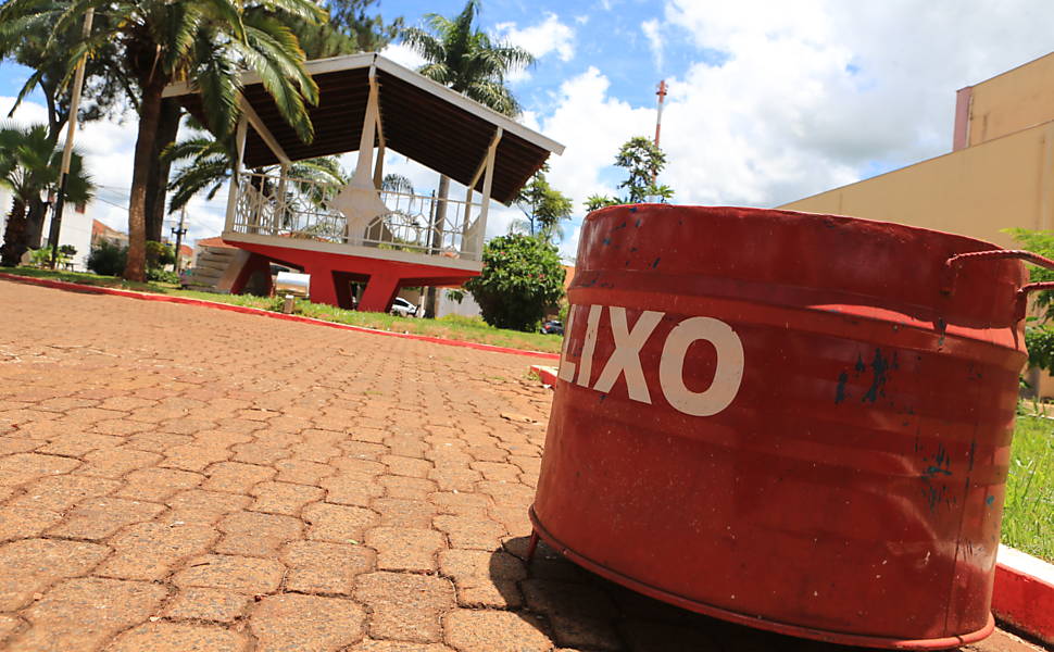 São praças, canteiros, bancos, parques, guias e sarjetas, postes e prédios públicos. Está tudo vermelho. Até as lixeiras da praça foram pintadas. Nem o prédio da prefeitura escapou. A cor também está presente dentro das escolas municipais.