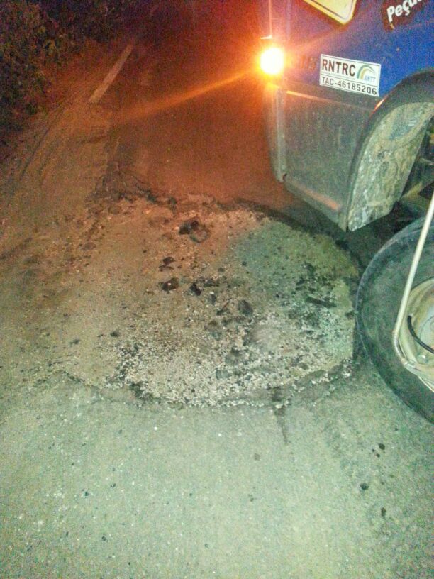 O trecho esburacado fica bem na entrada de Quixadá e exige muito cuidado de quem trafega no local.