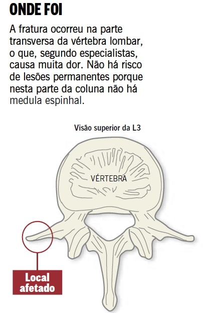 A fratura sofrida pelo jogador Neymar vai deixá-lo de fora da Copa do Mundo, mas não deve ter maiores implicações em sua carreira e sua vida. De acordo com especialistas ouvidos pelo GLOBO, o maior problema de fissuras nessas vértebras é a dor excruciante. Não foi por acaso que o atacante deixou o campo chorando copiosamente. Mas, garantem os médicos, não há risco de lesões permanentes.