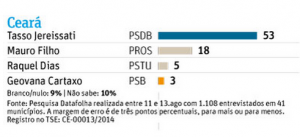 Foram entrevistados 1.108 eleitores em 41 municípios cearenses. A margem de erro é de três pontos percentuais, para mais ou para menos. A pesquisa está registrada no Tribunal Superior Eleitoral com o número 00013/2014.