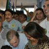 Mais cedo durante a manhã, Ricardo Silveira e uma multidão de pessoas caminharam junto com Eunício e Tasso por ruas do centro de Quixadá, onde os candidatos puderam cumprimentar e conversar com as pessoas