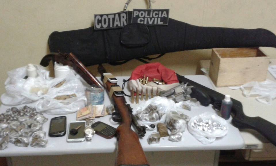 Segundo a Secretaria da Segurança Pública e Defesa Social, a polícia apreendeu maconha, crack e cocaína em três residências no bairro Campo Novo, além de um revólver calibre 38mm, um fuzil calibre 762, uma espingarda e munição. Em uma das casas existia uma fábrica de armas artesanais.