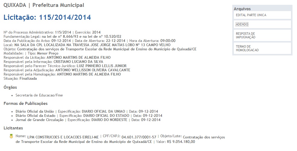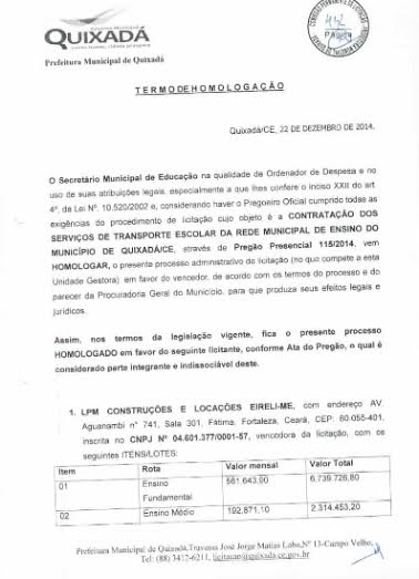 A Prefeitura Municipal de Quixadá poderá triplicar os gastos com a contratação dos serviços de transporte escolar no ano de 2015. São fortes os indícios de superfaturamento.