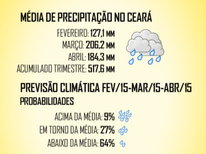 A Fundação Cearense de Recursos Hídricos (Funceme) apresentou nesta terça-feira, dia 20, o prognóstico climático para a quadra chuvosa de 2015 no Ceará.