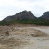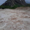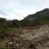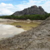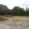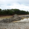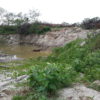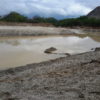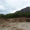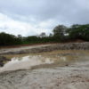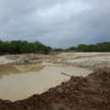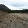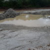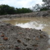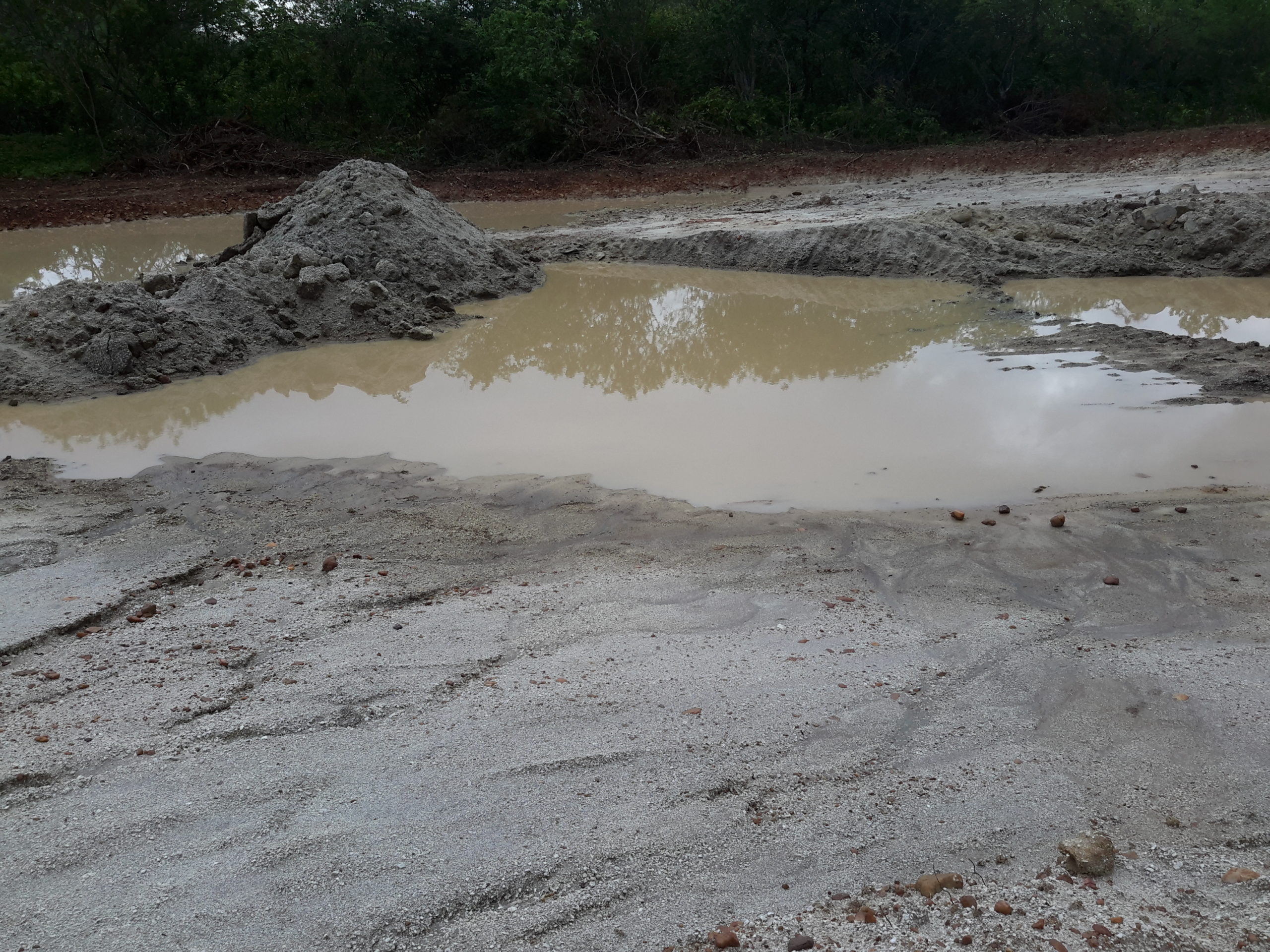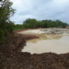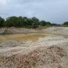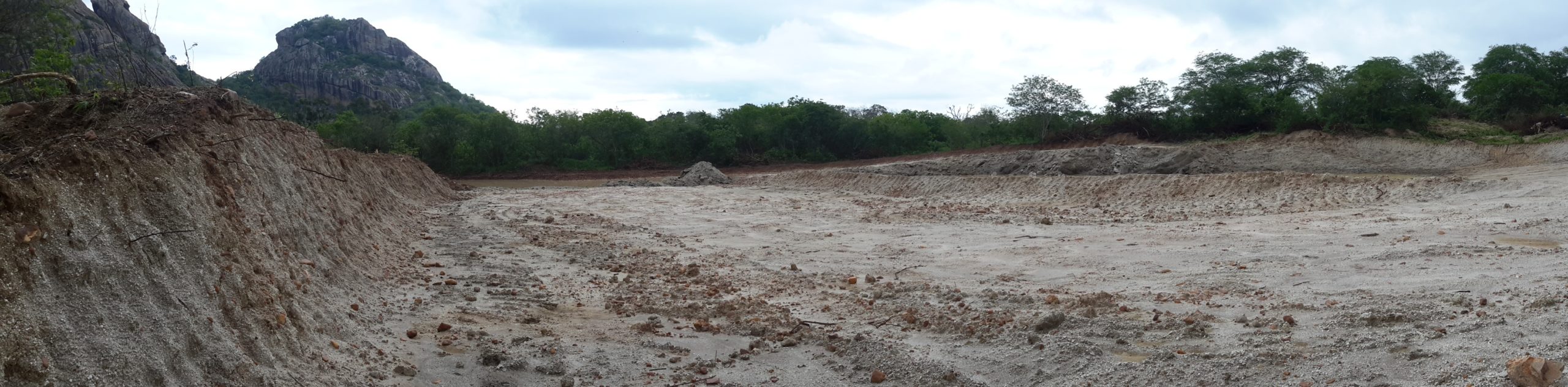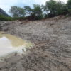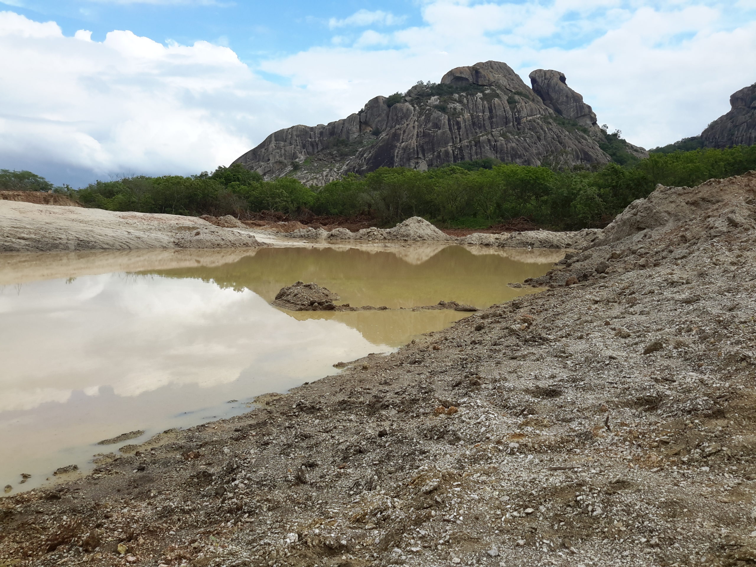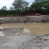 Máquinas levadas para a área continuaram extraindo aterro, deixando, no final, uma enorme cratera de centenas de metros de extensão. Com as chuvas mais recentes, o enorme buraco acumulou significativa quantidade de água. O material considerado bom, abaixo da primeira camada, teria sido destinado às obras da UFC e do DETRAN em Quixadá.