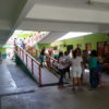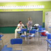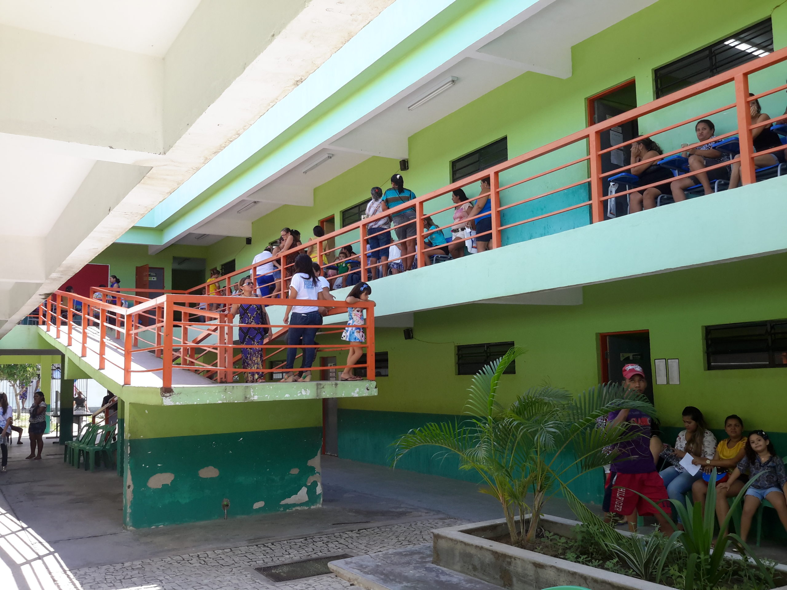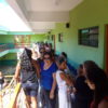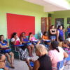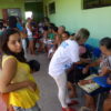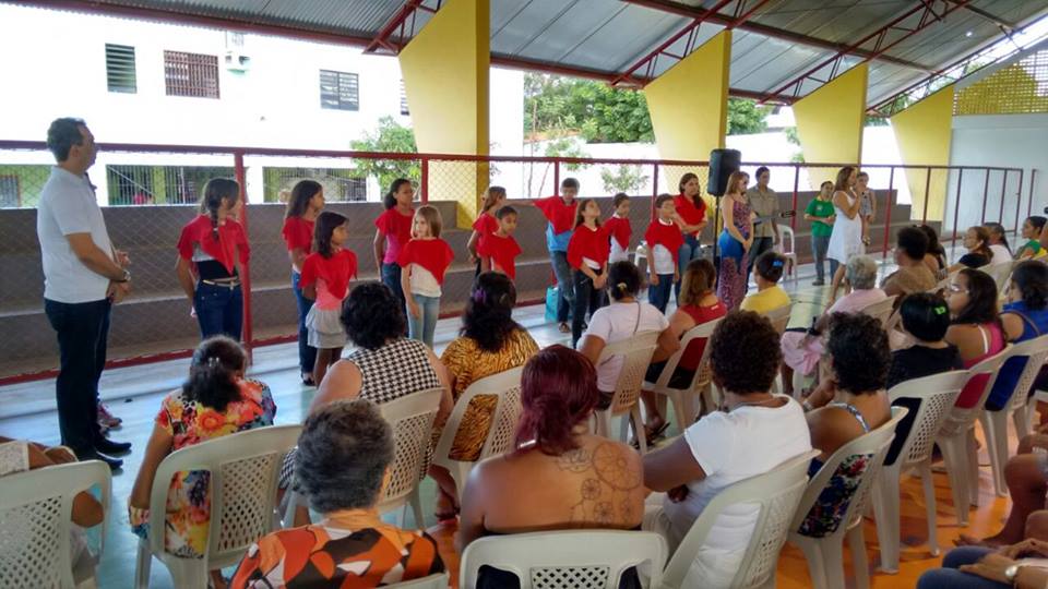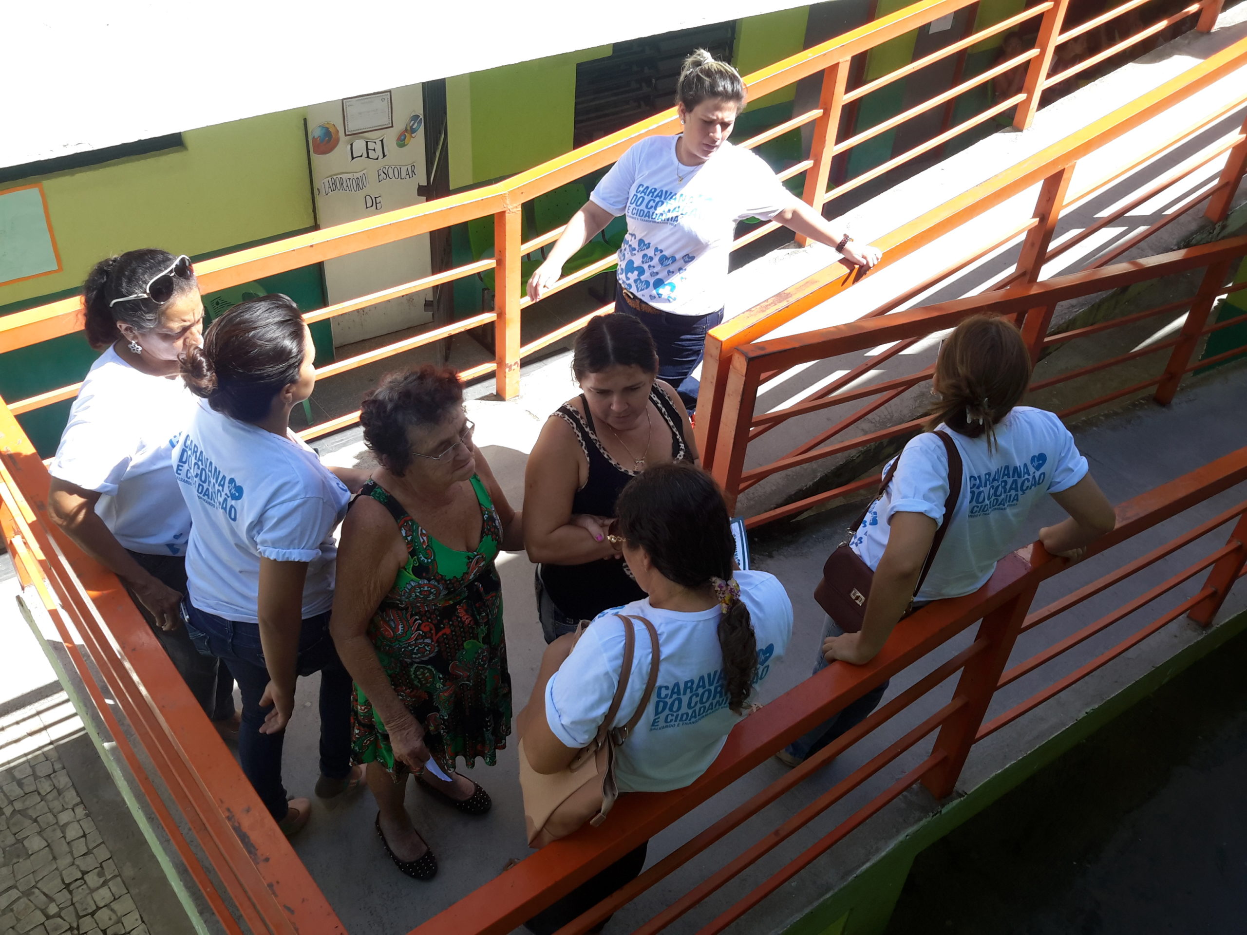 Logo no início do dia, um coral composto por crianças do bairro recebeu as mulheres e todos os voluntários da caravana.