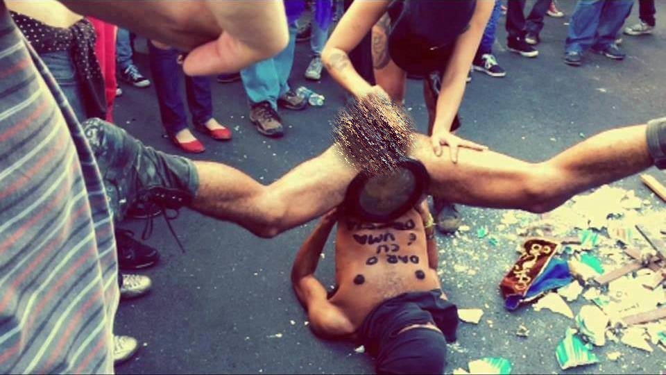 Nada que o diálogo não resolva. Não houve violência contra religiosos ou religião alguma. Só acho que muito mais grave é a resposta violenta de certas pessoas, que querem logo acabar ou criminalizar as pessoas. Porque não promover um debate sobre o que convém ao movimento expor? Acredito que se houver o diálogo com a organização do evento, logo eles vão barrar esse tipo de manifestação por não pegar bem, só isso. Para quem acha que liberdade de expressão é fazer o que quiser, vide a revista Charlie Heddo e outros exemplos de provocação gratuita.