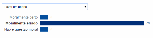 A rejeição ao aborto também caiu, ainda que continue em níveis altos: 79% o acham inaceitável, um pouco abaixo dos 85% de 2007.