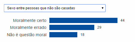 O mesmo jovem que valoriza o trabalho e a família também tem atitudes conservadoras quando se trata de costumes e questões morais, ainda que a rejeição a alguns comportamentos tenha caído desde 2007, quando o tema foi alvo de pesquisa anterior do Datafolha.