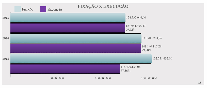 No gráfico abaixo é possível perceber as despesas planejadas e aquilo que realmente foi executado pela gestão municipal ao longo do exercício dos dois anos anteriores e no decorrer do ano corrente. No que se refere a 2015, chama realmente a atenção o fato de que, antes mesmo da metade do ano, quase todas as despesas planejadas para os 12 meses já tenham sido efetuadas. Veja.