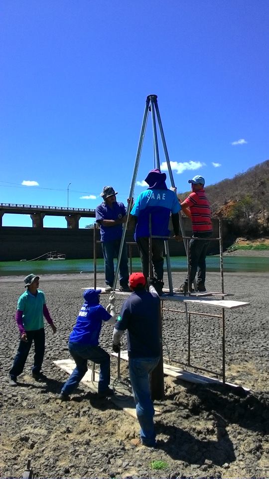 Técnicos da Gerência Regional da COGERH e do Serviço Autônomo de Água e Esgoto de Quixeramobim (SAAE), no Sertão Central do Estado, realizaram uma sondagem na área da bacia da Barragem de município com a finalidade de identificar, pelo perfil litológico, a viabilidade da construção de um poço amazonas no local. A intenção é fortalecer o abastecimento da comunidade.