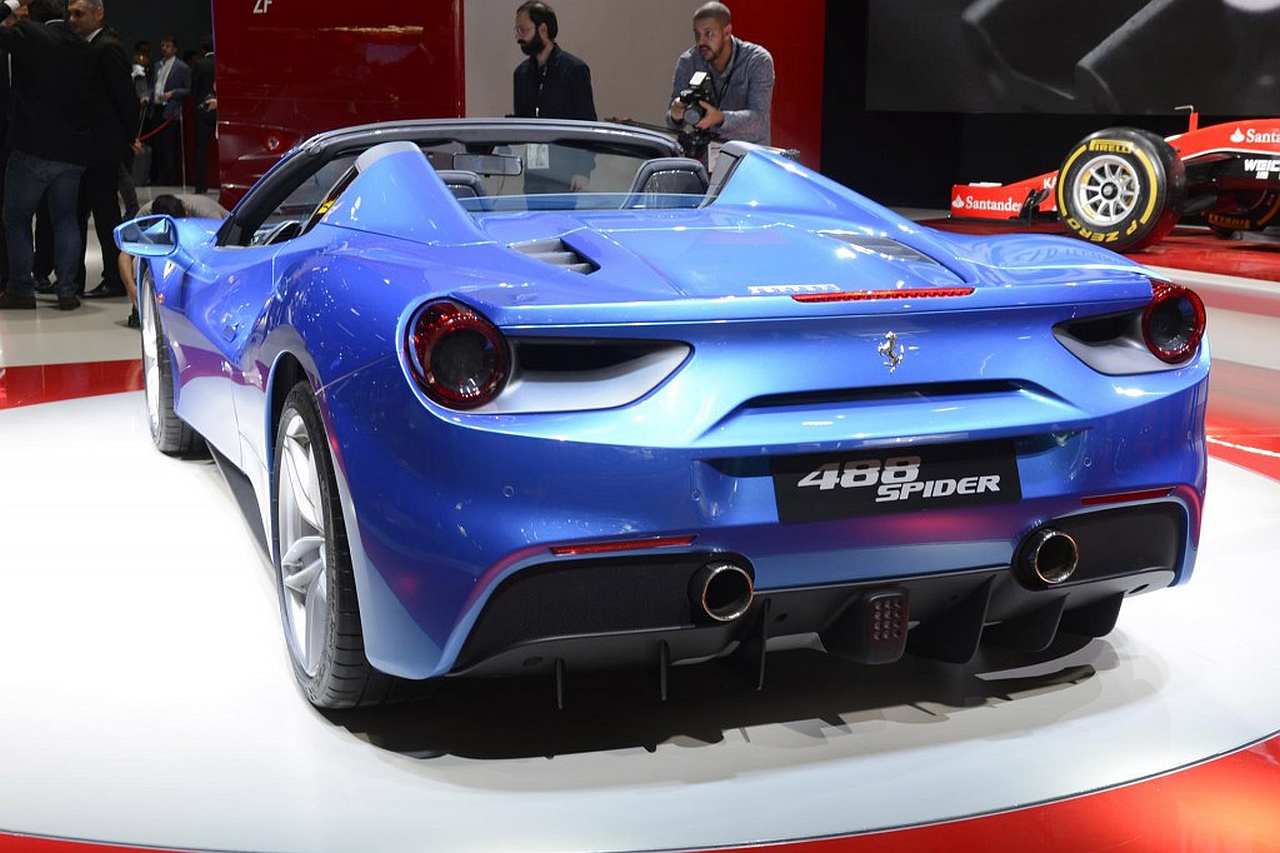 A versão conversível da nova Ferrari 488 GTB acaba de ser revelado pela montadora. O superesportivo fez sua estreia durante o salão de Frankfurt. As aberturas em sua plataforma traseira está diferente ao que consta do Spider 458; sem dúvida eles foram projetados de tal forma a circular mais o ar em torno da força do carro. O motor, um twin-turbo 3.9-litro V-8, é a mesma unidade encontrada no 488 GTB e aqui a sua saída é inalterada em 660 cavalos de potência. A Ferrari informou que o superesportivo faz de 0 – 100 km/h em 3,0 segundos e 200 km/h em 8.7 segundos. A velocidade máxima é de 320km/h.
