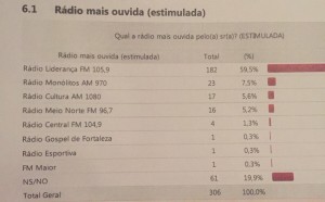 Em terceiro lugar ficou a Rádio Cultura, emissora ligada à Diocese de Quixadá, com 5,6% da preferência.