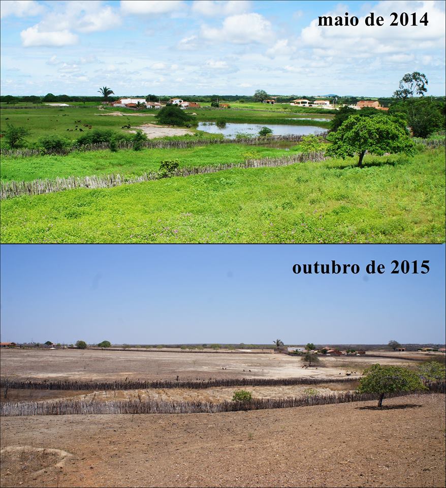 O professor Jards Nobre publicou em seu perfil numa rede social uma foto surpreendente que mostra o efeito da estiagem sobre o Sertão de Quixadá. As fotos comparadas foram feitas exatamente no mesmo local no Distrito de Cipó dos Anjos. Uma é de maio de 2014 e a outra de outubro 2015. Observe a diferença.