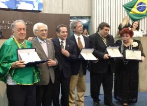 O deputado fez a entrega de uma placa em homenagem póstuma ao radialista e jornalista Edilmar Norões, recebida por seu filho, jornalista Paulo César Norões.
