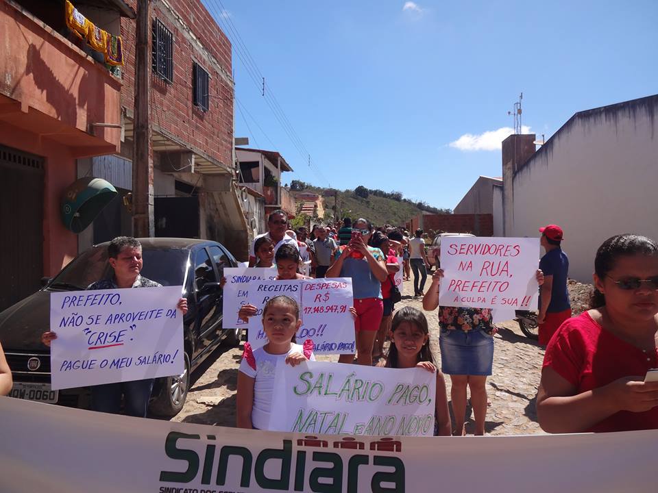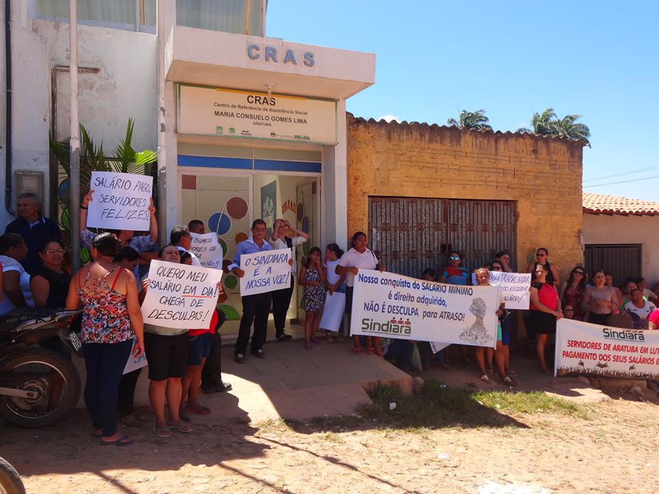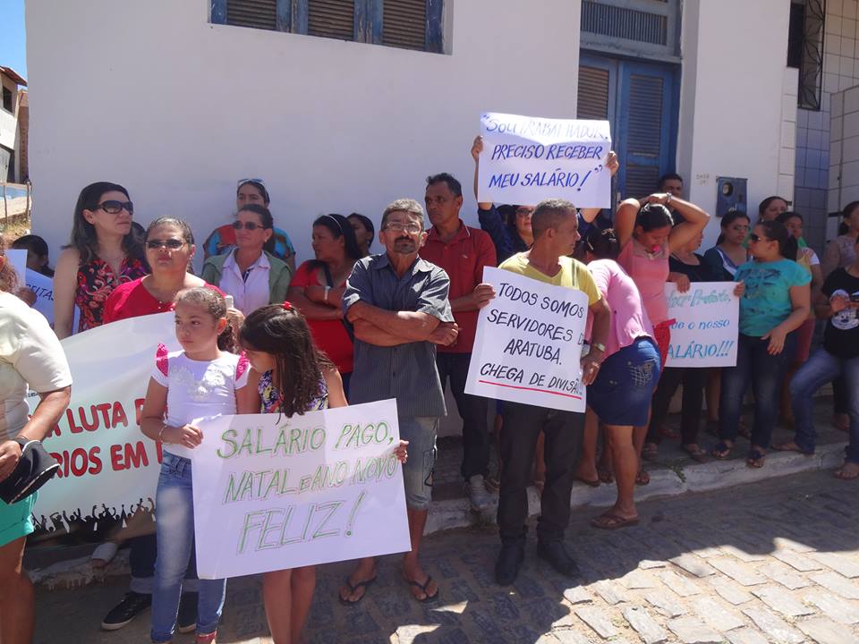 Nesta última terça-feira (07/12), servidores saíram mais uma vez às ruas para protestar em razão de salários atrasados. Já é a segunda paralisação realizada pelo Sindicato dos Servidores Públicos Municipais de Aratuba (Sindiara) em 15 dias.