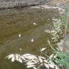O solo seco e rachado do açude histórico são sinais visíveis da prolongada estiagem que se abateu sobre a região. Com o volume baixo e a sujeira na água, o resto dos peixes que ainda viviam no reservatório começaram a morrer aos montes.
