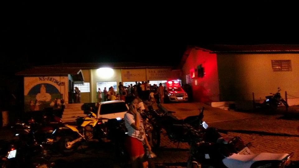 Movimentação em frente ao hospital de Jaguaretama, para onde o PM baleado foi inicialmente socorrido.