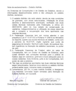 A nota da FCF foi emitida pela diretoria de Competições e pela diretoria de Gestão de Estádios.