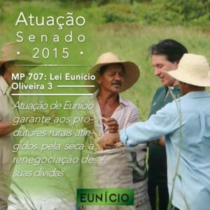 A lei 11.322, também conhecida como Lei Eunício Oliveira, beneficiou mais de 400.000 agricultores. Agora com a MP 707 o prazo da prescrição das dívidas dos agricultores fica prorrogado até 31 de dezembro de 2.016.