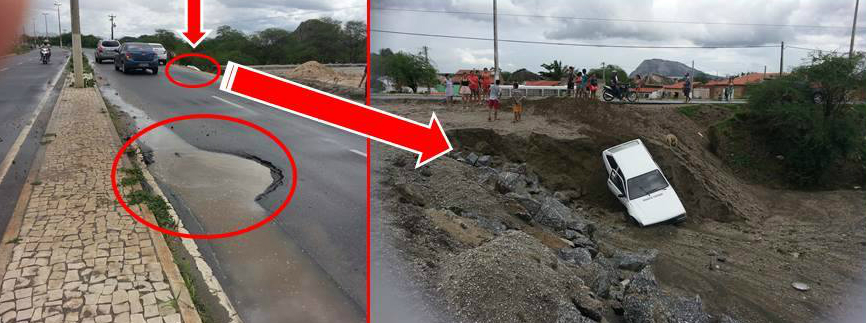 Na tarde deste domingo, 24, o motorista de um carro tentou desviar de buracos na Avenida Jesus, Maria e José, na saída de Quixadá para Fortaleza, nas proximidades do Fórum Desembargador Avelar Rocha, mas perdeu o controle do veículo e saiu do asfalto, indo parar dentro de uma cratera produzida por um aterramento.
