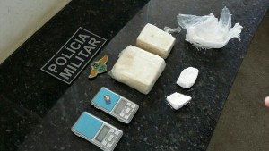 Durante a revista, os agentes, Laverno, Adriano, Rivaldo e Rilky, encontraram na bagagem do Ricardo Nascimento Lima, dois tabletes de pasta base de cocaína pesando aproximadamente dois quilos, e duas balanças de precisão.