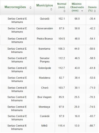 Outros municípios registraram aumentos igualmente surpreendentes: Canindé (224%), Mombaça (140%), Madalena (171%), Quixeramobim (89,1%), Solonópole (54,1%), Milhã (41%), Boa Viagem (38%), Pedra Branca (41,1%) e Ibaretama (7,8%).