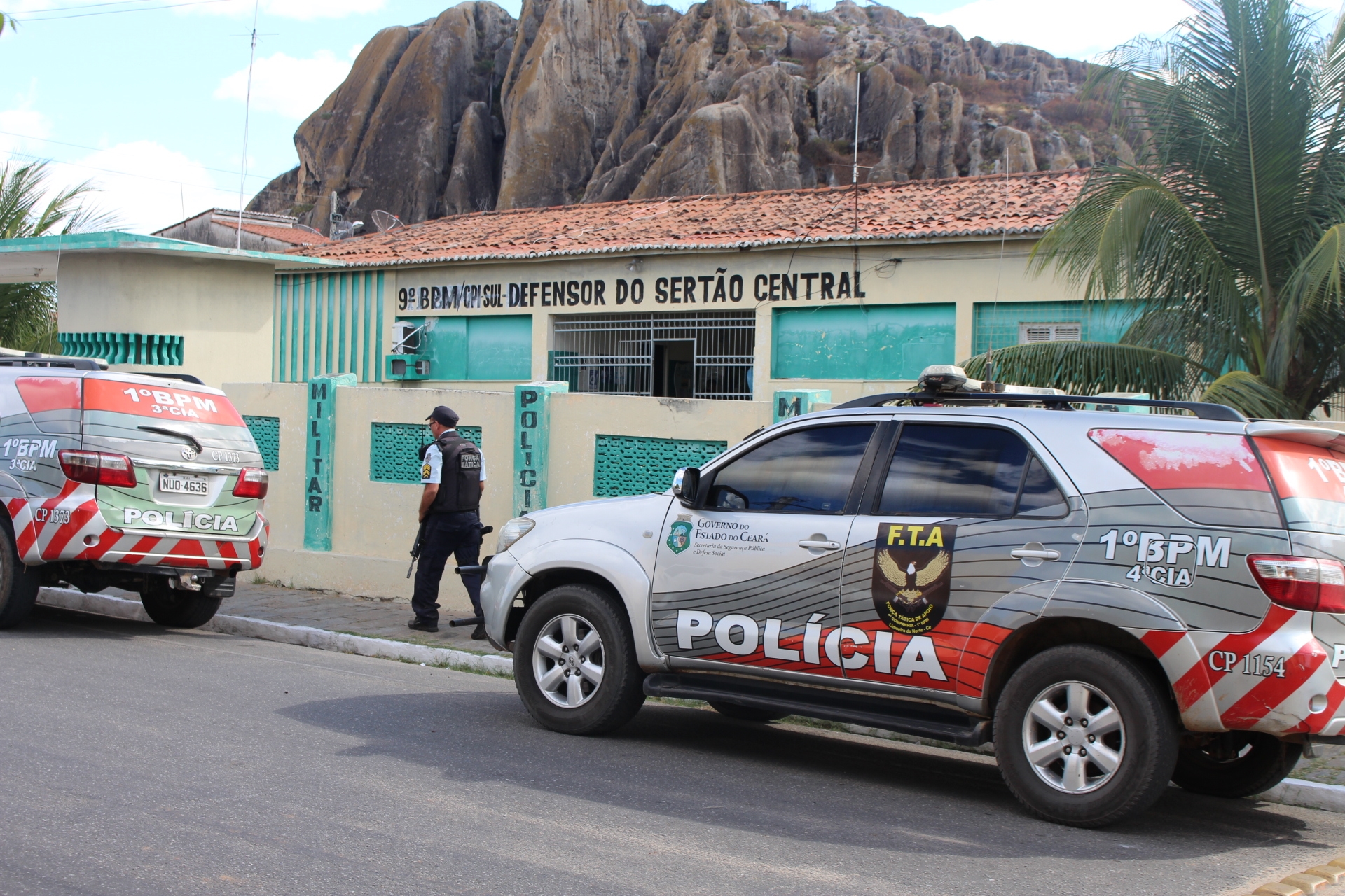 Os homens que estavam a bordo do outro veículo fugiram após o tiroteio em direção ao município de Ibaretama. Policiais do Cotar estão em perseguição.
