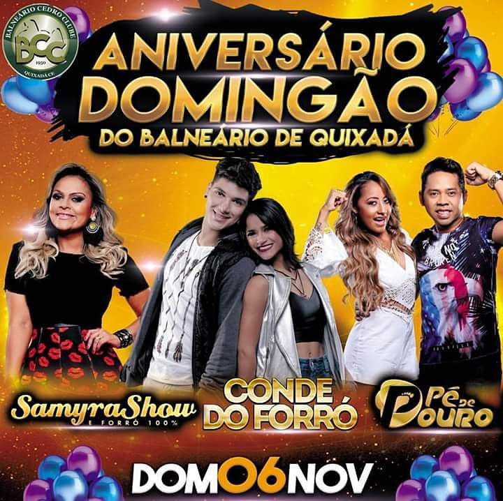 Atrações: Samyra Show, Conde do Forró e Forró Pé de Ouro
