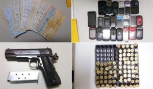Além da elevada quantia em dinheiro e das munições, de diversos calibres, no imóvel, os agentes de segurança também apreenderam uma pistola calibre ponto 45, 25 folhas de cheques preenchidas com valores variados e 33 documentos de veículos, além de 24 celulares.
