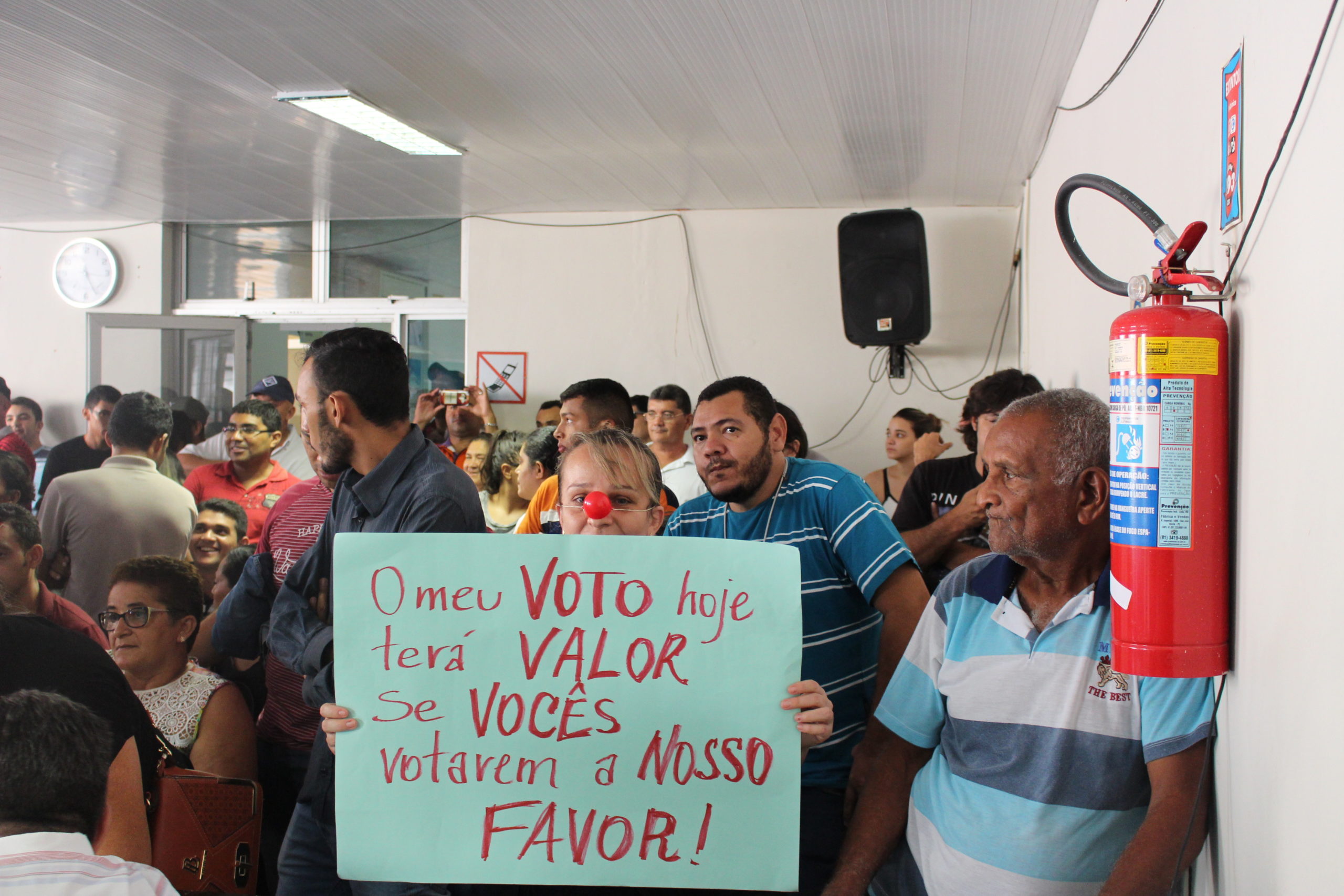A Câmara de Quixadá votou na manhã dessa sexta-feira (27), somente dois dos seis projetos enviados pelo executivo para apreciação dos parlamentares. O plenário esteve mais uma vez lotado de servidores, concursados e a população em geral que estiveram presentes para acompanhar de perto do desenrolar dos acontecimentos.