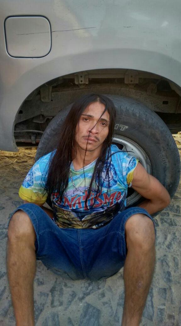 O acusado é ex-presidiário e foi identificado como Ernandes Benjamim de Paiva, vulgo “Guelé”, 24 anos, natural de Quixadá. Ele foi preso na Rua do Corte. Quando a polícia chegou na residência do mesmo, ele tentou se evadir, mas foi capturado.