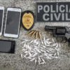 O suspeito foi preso em posse de um revólver calibre 38 com 04 munições intactas, e setenta e oito trouxinhas de cocaína. Em seu depoimento o acuasdo disse que a arma seria para sua segurança pessoal e a droga para seu próprio consumo. A Polícia Civil disse que o acusado já foi preso anteriormente por tráfico de drogas.