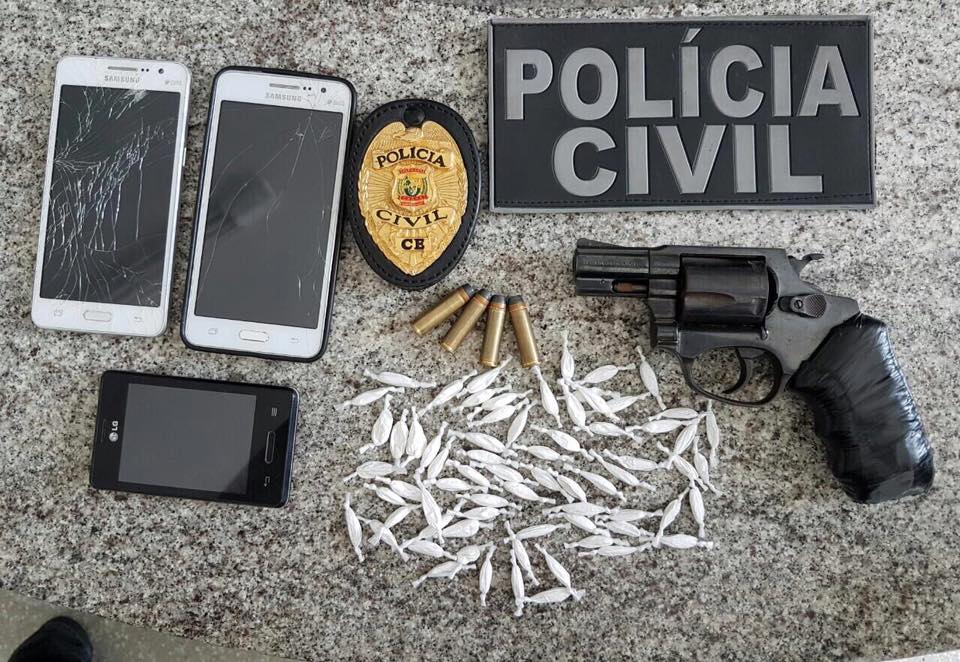O suspeito foi preso em posse de um revólver calibre 38 com 04 munições intactas, e setenta e oito trouxinhas de cocaína. Em seu depoimento o acuasdo disse que a arma seria para sua segurança pessoal e a droga para seu próprio consumo. A Polícia Civil disse que o acusado já foi preso anteriormente por tráfico de drogas.