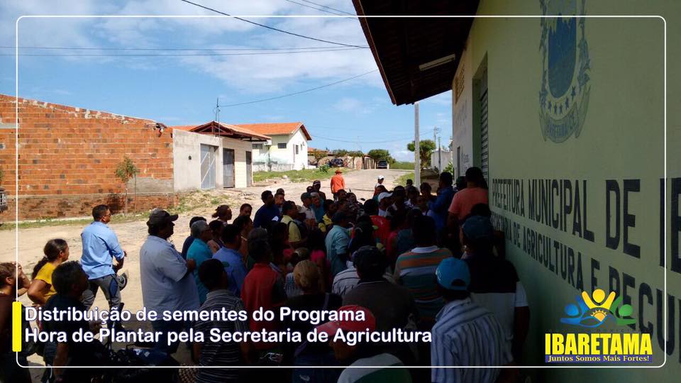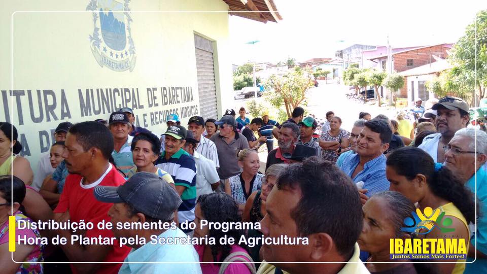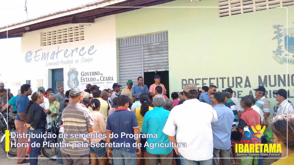 A Prefeitura Municipal de Ibaretama, através da Secretaria de Agricultura, realizou nesta semana a distribuição de sementes do programa “Hora de Plantar”, de responsabilidade do Governo do Estado do Ceará e Ministério da Agricultura. Segundo informações repassadas pela assessoria de comunicação da Prefeitura de Ibaretama, mais de 200 agricultores do município foram beneficiados com a distribuição das sementes.