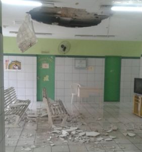 Após as fortes chuvas registradas em Quixadá no início da noite deste domingo (05), parte do teto da Unidade Básica de Saúde do Centro (Antigo Sesp) desabou, o local estava fechado e ninguém se feriu.