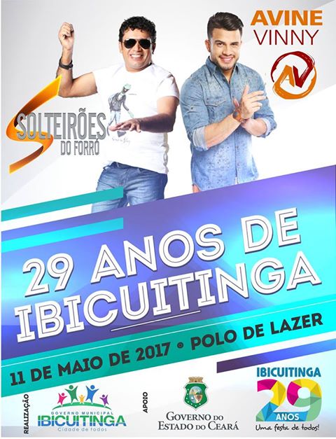 A Prefeitura de Ibicuitinga já divulgou as atrações do aniversário de 29 anos de emancipação política do município. Foto: Divulgação