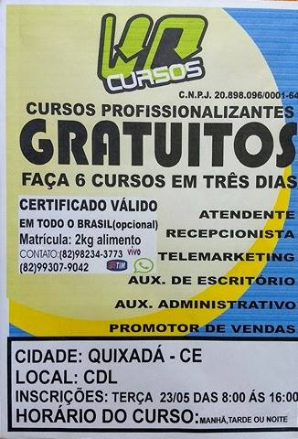 Para aquelas pessoas que buscam se inserir no mercado de trabalho ou até mesmo se qualificar em algumas áreas de atuação, a “Vc Cursos Profissionalizantes” traz a Quixadá cursos profissionalizantes gratuitos.