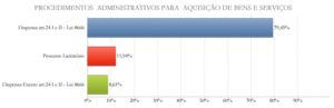 A Prefeitura Municipal de Quixadá, até o final do 1º quadrimestre do exercício de 2017, realizou pagamentos para aquisição de bens e serviços utilizando-se das algumas modalidades de procedimentos administrativos, porém um fator chamou bastante atenção, quase 80% da aquisição de bens ou serviços foi realizado através de dispensa de licitação, apenas pouco mais de 11% foram através de licitações.