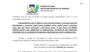 Essa guerra jurídica está causando muitos transtornos para as pessoas que foram aprovadas no concurso público, e pelo visto deverá prejudicar a população de Quixadá.