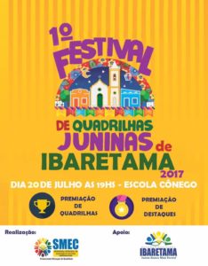 A cultura e a tradição das festas juninas serão resgatadas em Ibaretama com a realização do 1º Festival de Quadrilhas Juninas do município. O evento é uma realização da Prefeitura Municipal através da Secretaria de Educação e acontecerá na próxima quinta-feira (20) a partir das 19 horas na Escola Cônego.